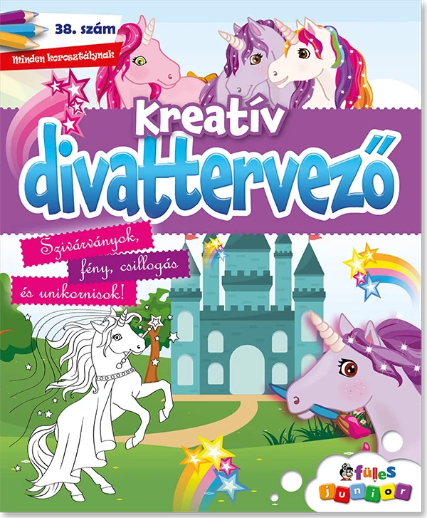 Színező a legújabb trendek szerint. Ebben a színezőben minden az unikornisok körül forog. Kiváló minőségű papíron. Minden egyes rajz külön kitéphető a perforáció mentén.