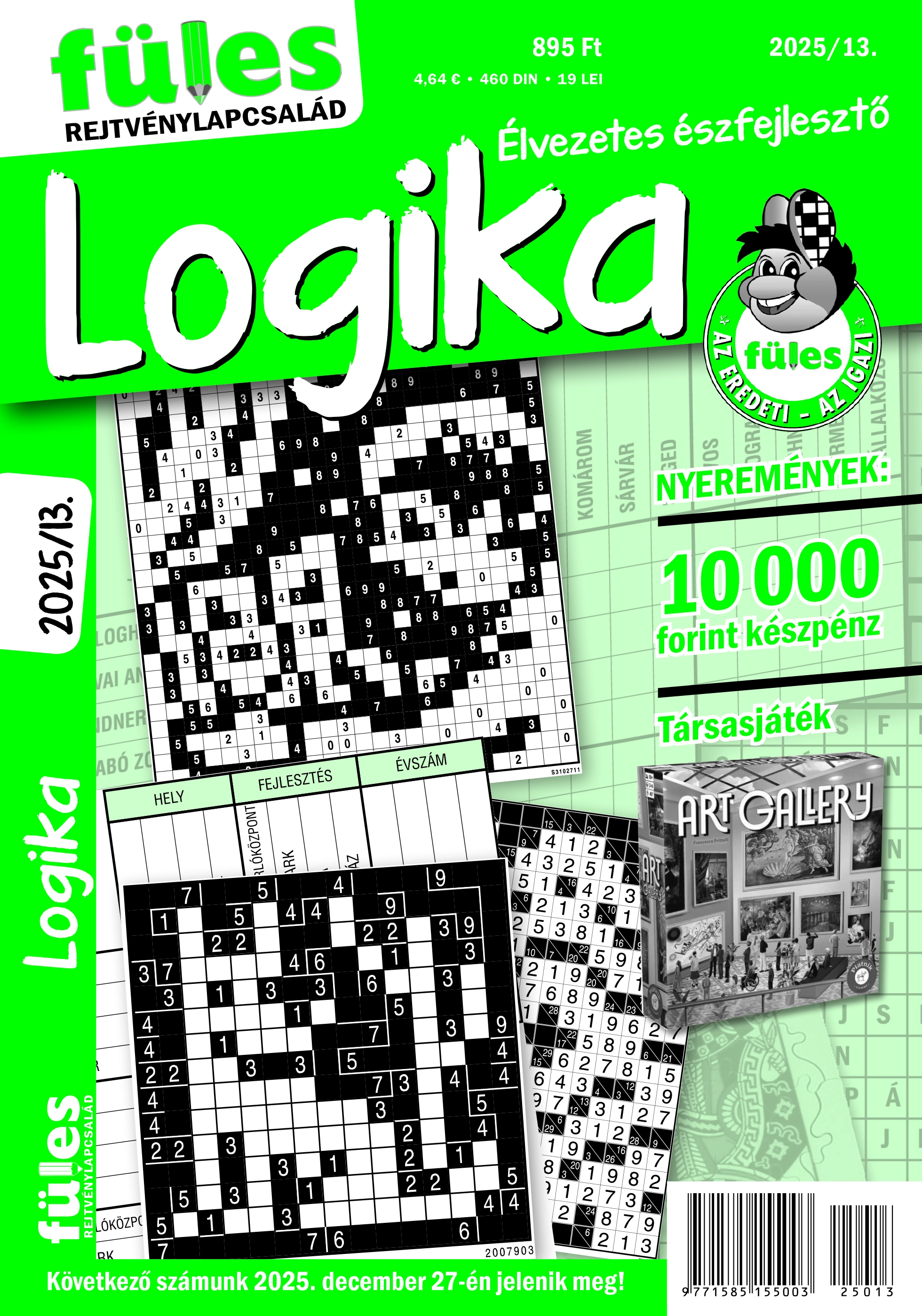 A logikai rejtvényeket kedvelők lapja. Táblázatos logika feladványok, sudoku, scrabble, szójátékok és rengeteg más izgalmas rejtvény. Ha a rejtvénylap már nem kapható árus terjesztésben (lejárt), akkor a rejtvénylapban szereplő pályázati rejtvénnyel már nem lehet érvényesen pályázni.