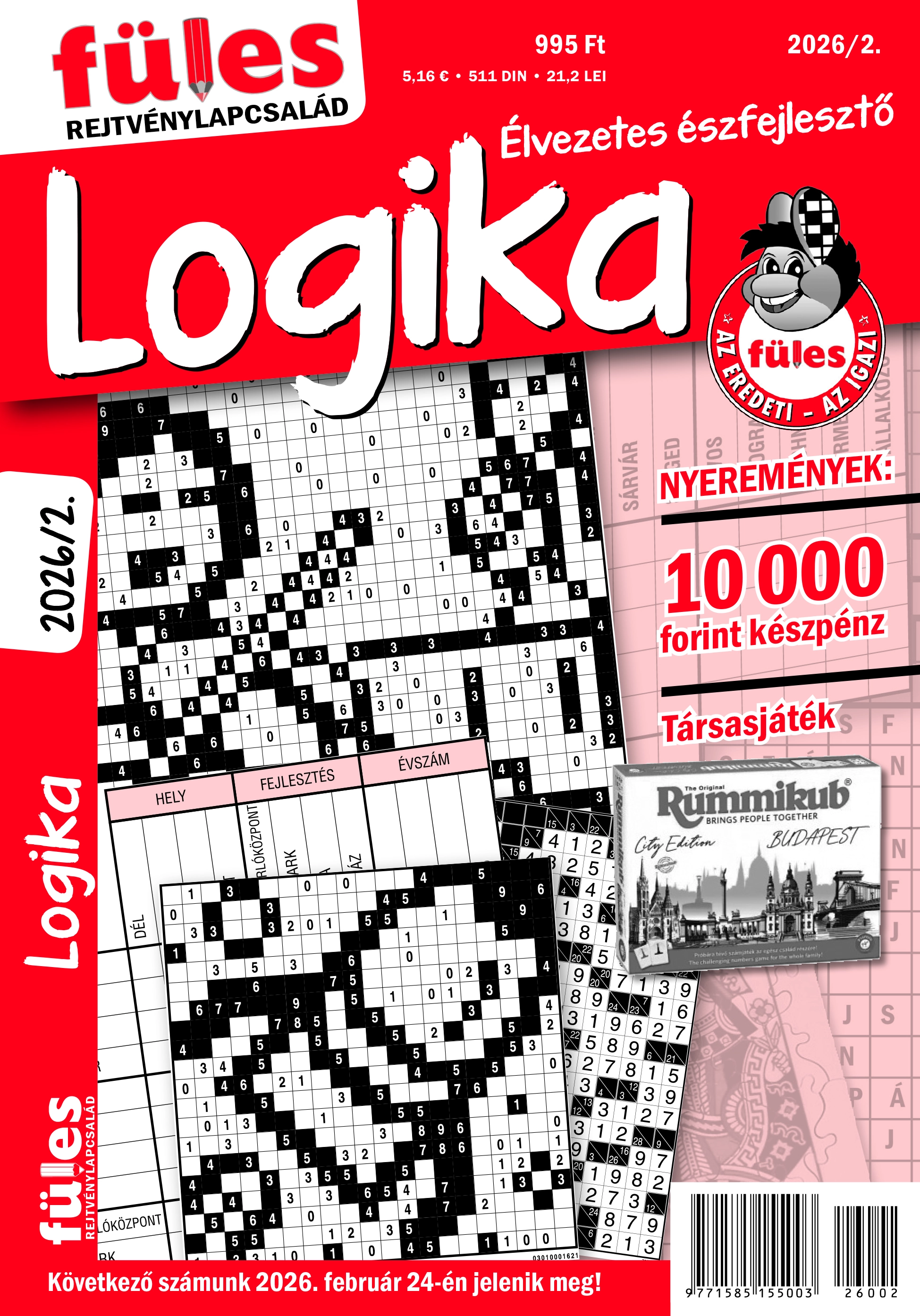 A logikai rejtvényeket kedvelők lapja. Táblázatos logika feladványok, sudoku, scrabble, szójátékok és rengeteg más izgalmas rejtvény. Ha a rejtvénylap már nem kapható árus terjesztésben (lejárt), akkor a rejtvénylapban szereplő pályázati rejtvénnyel már nem lehet érvényesen pályázni.