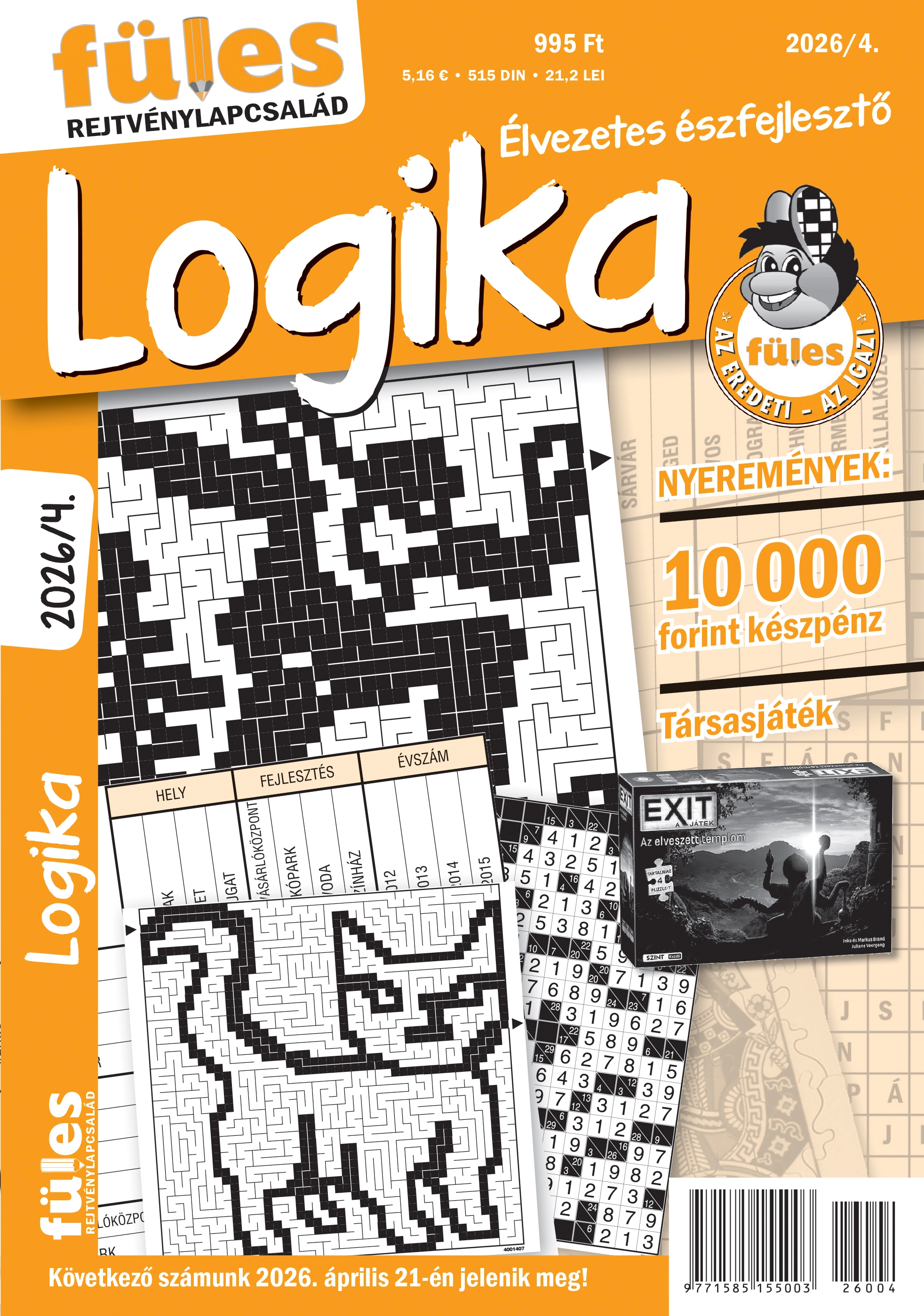 A logikai rejtvényeket kedvelők lapja. Táblázatos logika feladványok, sudoku, scrabble, szójátékok és rengeteg más izgalmas rejtvény. Ha a rejtvénylap már nem kapható árus terjesztésben (lejárt), akkor a rejtvénylapban szereplő pályázati rejtvénnyel már nem lehet érvényesen pályázni.