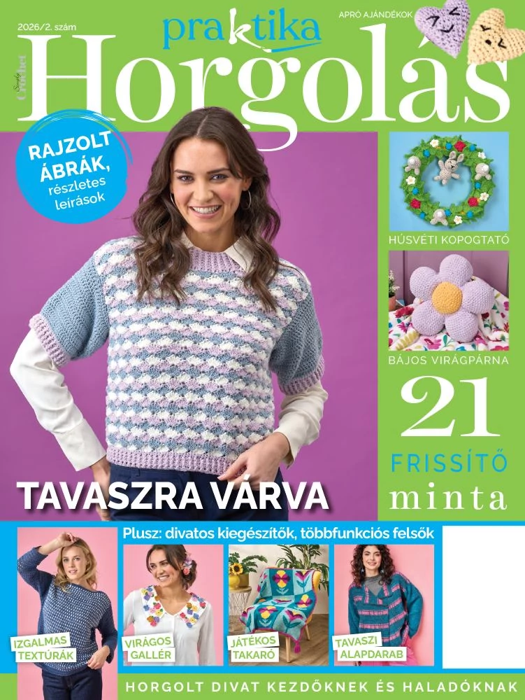 Horgolás könnyedén kezdőknek és haladóknak - horgolt ruhák, kiegészítők, lakásdekoráció, amigurumi figurák. Részletes leírások, fázisfotók. A magazin egyedi tartalmát a horgolható otthon dekoráció jelenti, ami kuriózum a piacon. A nehezebb mintákhoz leszámoló rajzot nyújt a lap, hogy könnyedebbé tegye a horgolást.
