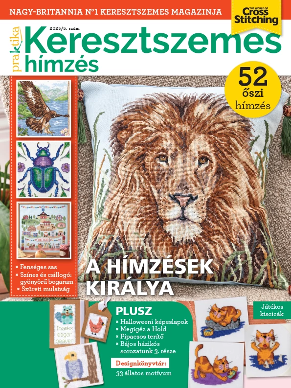 Keresztszemes hímzéssel készült lakásdekorációk, modellek. A magazin az egyik legnépszerűbb hímzéstechnikára épül, és a Nagy Britanniában piacvezető The World of Cross Stitching egyedi, modern és színvonalas mintáit mutatja be.