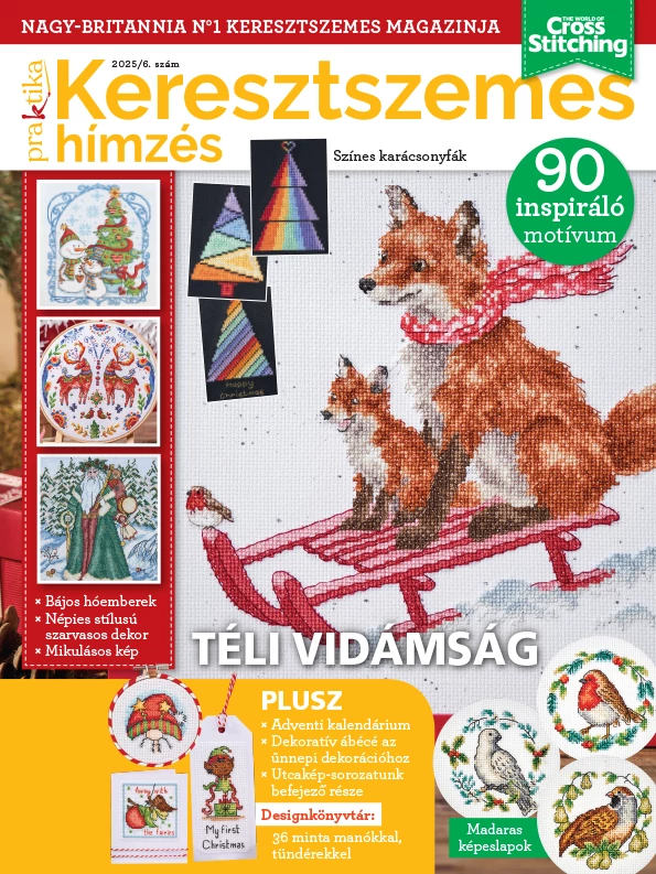 Keresztszemes hímzéssel készült lakásdekorációk, modellek. A magazin az egyik legnépszerűbb hímzéstechnikára épül, és a Nagy Britanniában piacvezető The World of Cross Stitching egyedi, modern és színvonalas mintáit mutatja be. Karácsonyi és ünnepi hímzések.